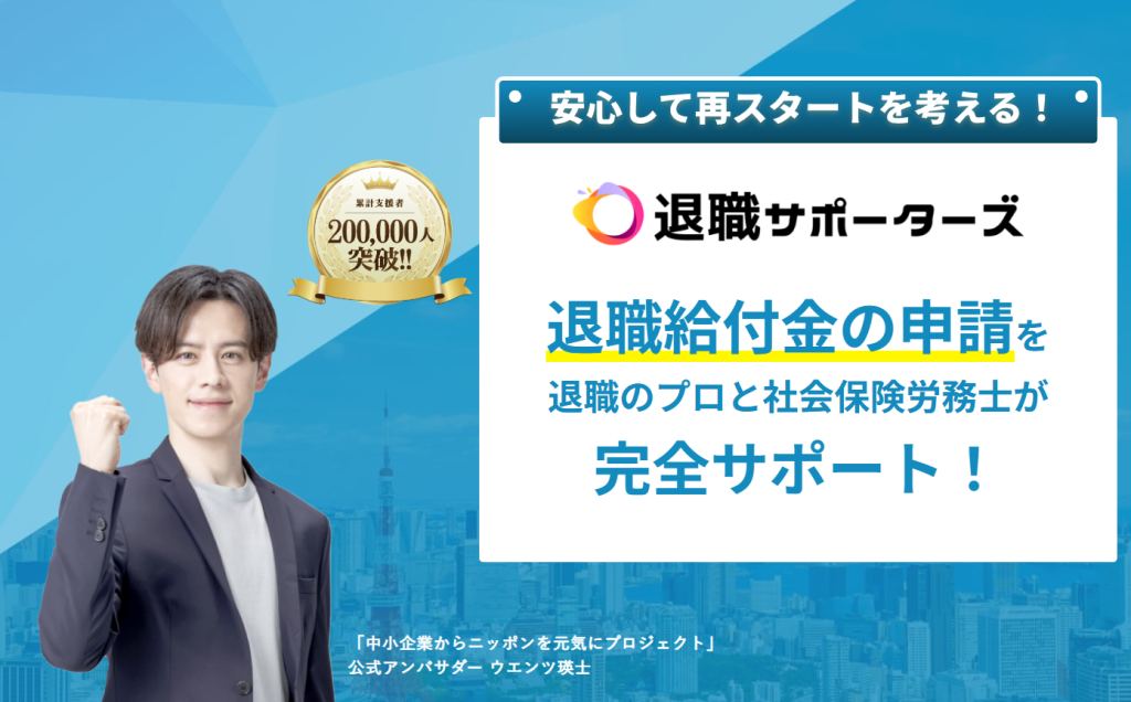 退職サポーターズは累積20万人の方が退職相談をした、国内最大規模の『失業保険(失業手当・退職給付金)申請サポートサービス』です。