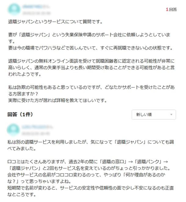 と、「多くの人がサポートを受けられるように準備してくれている」「費用が高かった」「サポートを全然してくれなかった」など様々な感想がありましたが、特にサービス名称が何度も変わっているので不安だ、というコメントが多く、全体的にあまりいい口コミが少ないように思えました。